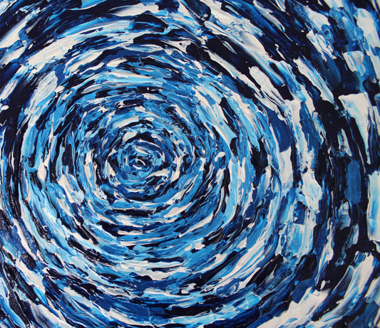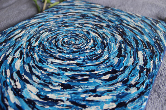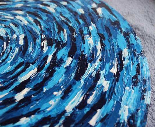 Blue and White Spiral on Circle Canvas 1 - Original Painting