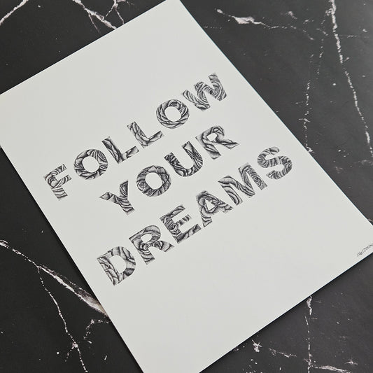 Follow Your Dreams Quote in Fineliner Roses - Giclee Print of Original Artwork