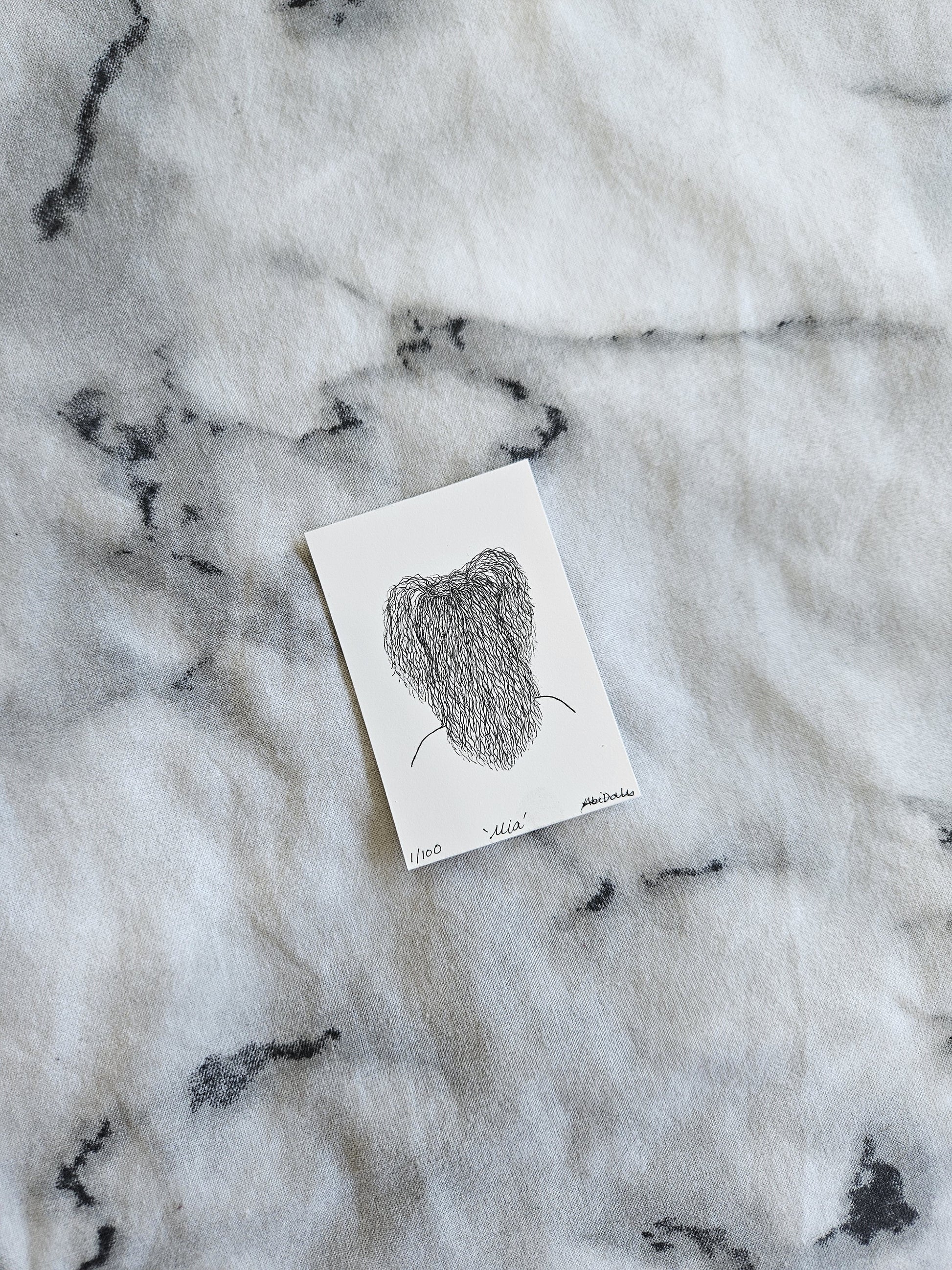Created from an original artwork titled 'Mia', this beautiful giclee print was produced in house here at Fragile Art. Measuring 3 X 2 inches and featuring a long curly hairstyle of half-up, half-down pigtails, the original artwork was hand drawn in pencil and black fine liner as part of our Hair Collection. As one of three pieces celebrating curly hair in this hairstyle, Mia has the loosest curls, compared to the other girls who have tighter, coil curls.